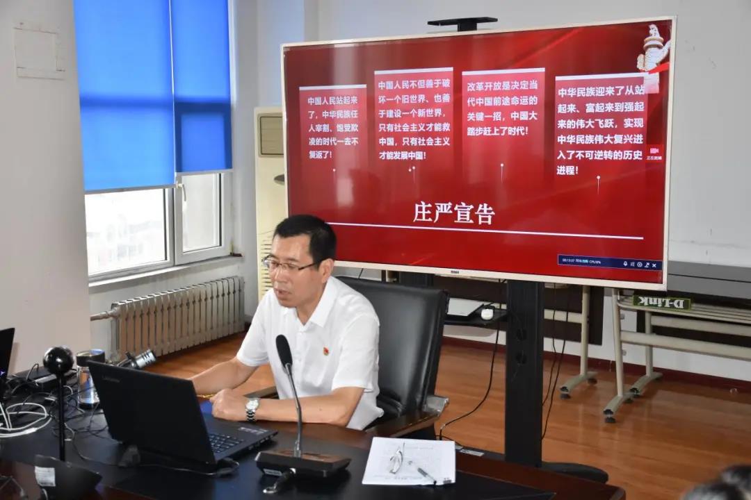 伊焕斌领学了习近平总书记在庆祝中国共产党成立100周年大会上的重要讲话精神。他从“金句要点回顾,重温精彩瞬间;深入学习讲话,领会精神实质;以复兴为己任,书写人生华章”三个方面为同学们进行了授课辅导,并对全体学生提出三点希望:一要鉴往知来,学以致用;二要生逢盛世,勇往直前;三要勤学修德,脚踏实地,用“请党放心,强国有我”的铮铮誓言激励自己奋勇拼搏,破浪前行。伊焕斌的授课理论逻辑清晰、内容深入浅出,讲述环环相扣,坚定了广大师生“听党话、跟党走”的坚强决心,坚定了对走中国特色社会主义道路的坚定信心,增强了师生“不负青春、不负韶华、不负时代”的责任担当。