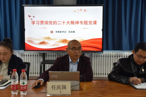 任庆国围绕党的二十大报告中的新观点、新论断、新思想,以“深刻理解党的二十大主题”为开篇,带领大家从“两个确立、三个务必、三件大事、五个必由之路、九个深刻领会、中国式现代化”等一系列思想观点中体悟党的二十大报告这一马克思主义纲领性文献的丰富内涵,深刻领会新时代、新征程中国共产党的使命和任务,深刻领会全面从严治党永远在路上、党的自我革命永远在路上等内容,为全体党员上了一堂生动的专题党课。授课结束后,会场上响起热烈的掌声。任庆国要求全体党员要自觉做学习宣传贯彻党的二十大精神的先行者,全体同志要把学习宣传贯彻党的二十大精神作为当前和今后一段时期最重要的政治任务,深刻领会党的二十大报告所蕴含的重要思想、重要观点、重大战略、重大举措,切实把思想和行动统一到党的二十大特别是习近平总书记重要讲话精神上来。自动控制工程学院党总支书记迟国利同志代表全体党员表态,学院党总支将组织全体教职员工认真抓好学习,教育引导学院师生用党的二十大精神武装头脑、指导实践、推动工作,为奋力谱写学校高质量转型发展新篇章,实现学校发展目标而努力奋斗!