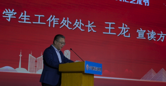 学生工作处处长在开幕式上宣读我校《2023年大学生校园(社团)文化艺术节实施方案》。本届艺术节贯穿全年,面向全校青年学生广泛开展类型多样、内容丰富的文化活动。各学院分团委、学生社团将围绕歌手大赛、舞蹈大赛、朗诵大赛等7项精品项目设计开展文化活动。