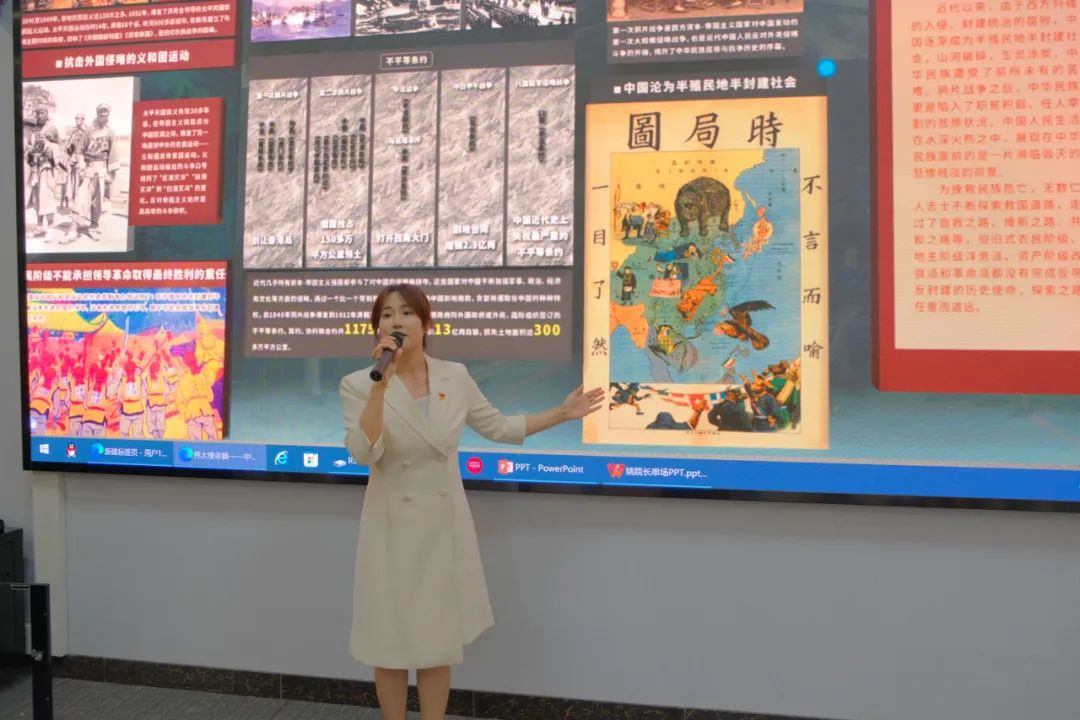 伊焕斌一行参观考察了辽宁世纪教育研究院马克思主义理论教育基地实践教学基地。在“书记有约·共话三育”活动集体备课和主题报告环节,大家共同观看了《胸有凌云志谨存保密心——谈“保守党的秘密”的重要性》、《创新赋能新突破奋楫扬帆新征程》示范微党课视频。辽宁世纪教育研究院孙天舒老师以抗疫虚拟仿真教学体验系统、工匠精神虚拟仿真教学体验系统在思政课教学中的应用为例进行红色虚拟仿真教学资源使用培训。马克思主义学院陈晓红老师围绕《毛泽东思想和中国特色社会主义理论体系概论》第三专题新民主主义革命进行示范教学展示。随后,大家共同观摩学习了广西建设职业技术学院李生老师的思政课教学展示活动特等奖作品。闫海涛围绕《新形态教学工具对高校思政课的影响、价值和应用》作主题报告,为我校教师运用新形态教学工具提高思政课育人实效提供了新的思路。