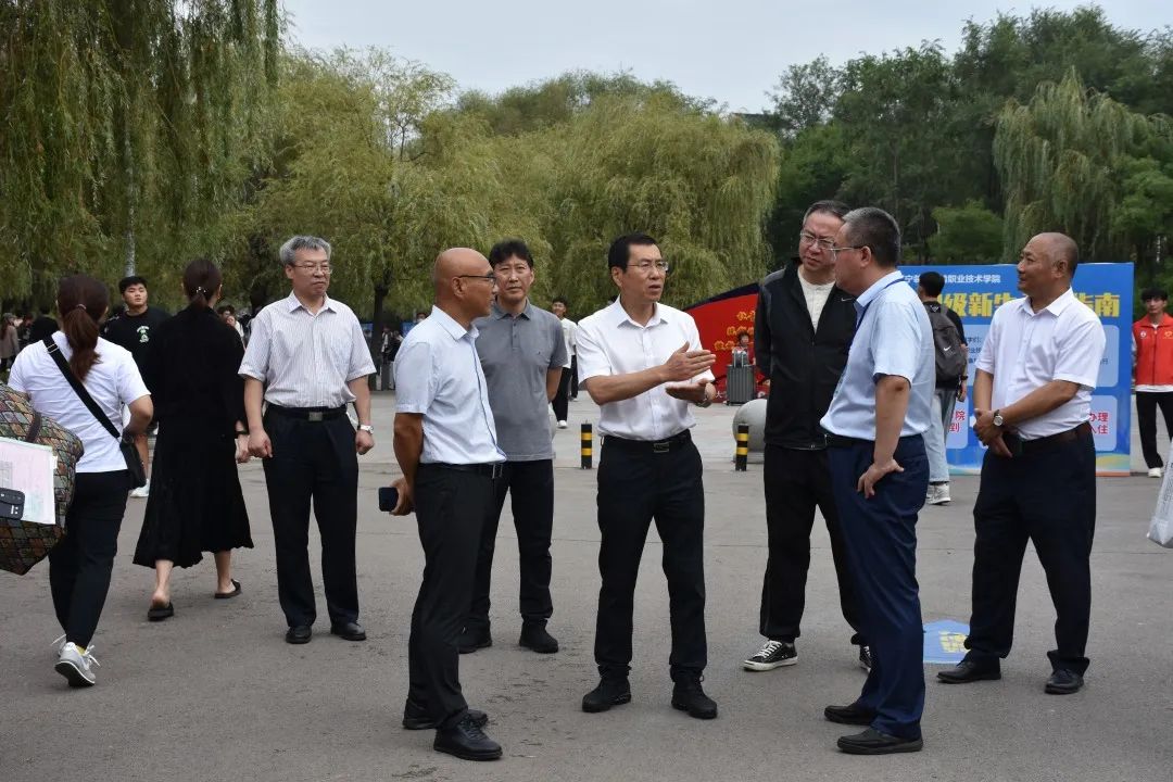 9月9日清晨,学校党委书记伊焕斌,党委副书记任庆国,副校长吴厚兴、李冬青、冯继光,校长助理刘祚斌、赵国军以及相关部门负责人现场督导学生报到工作。伊焕斌一行深入各学院迎新接待点、志愿者服务站、绿色通道等处,了解现场服务保障情况,慰问工作人员和志愿者,每到一处都驻足仔细询问,指导迎新工作,及时解决问题,确保新生报到各项工作保障到位。校领导为开启大学生活的新同学送上祝福,寄语同学们志存高远,不负韶华,成长成才。