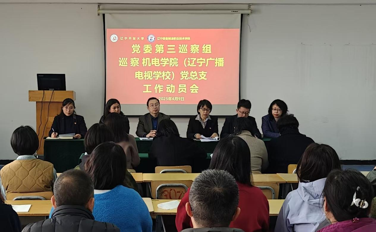 根据学校党委关于第四轮巡察工作的统一部署,2025年4月9日,党委第三巡察组巡察机电学院(辽宁广播电视学校)党总支工作动员会召开。会前,巡察组与机电学院(辽宁广播电视学校)领导班子成员召开见面沟通会,通报了有关工作安排。会上,巡察组组长张春芳作了动员讲话,党委巡察工作领导小组成员、巡察办主任张骥对做好巡察工作提出要求。机电学院(辽宁广播电视学校)党总支书记崔俊秀主持会议并作表态发言,党总支副书记、院长(校长)宋欣颖一并作表态发言。巡察组副组长及巡察组成员,机电学院(辽宁广播电视学校)党政领导班子成员及学院全体教职工参加了动员会议。